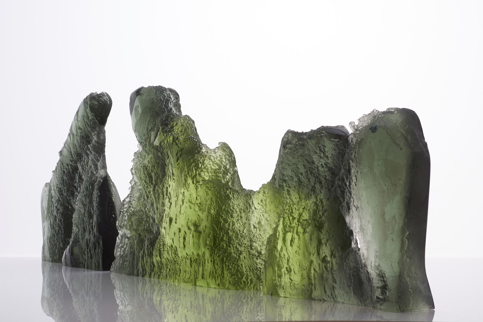 kiln-cast glass; lost ice process with salt erosion