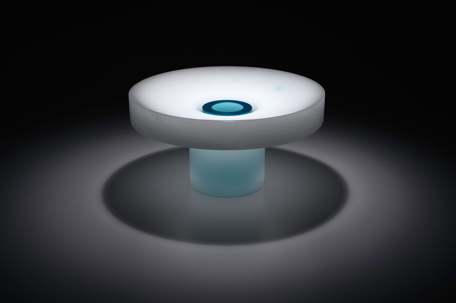 Each glass artist has their own perception of their medium and its capacities. For Romanelli, when glass is cast, "it's like no other material" in its ability to "hold" light within without projecting it outside. "It's almost like solid light." This illusion, by which light is transformed into a tangible substance, is precisely what sculptures like Candidus I manage to achieve.